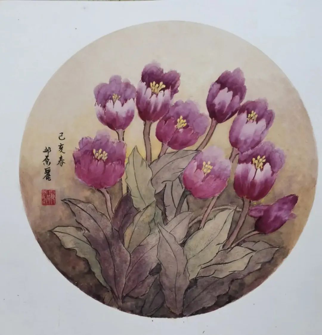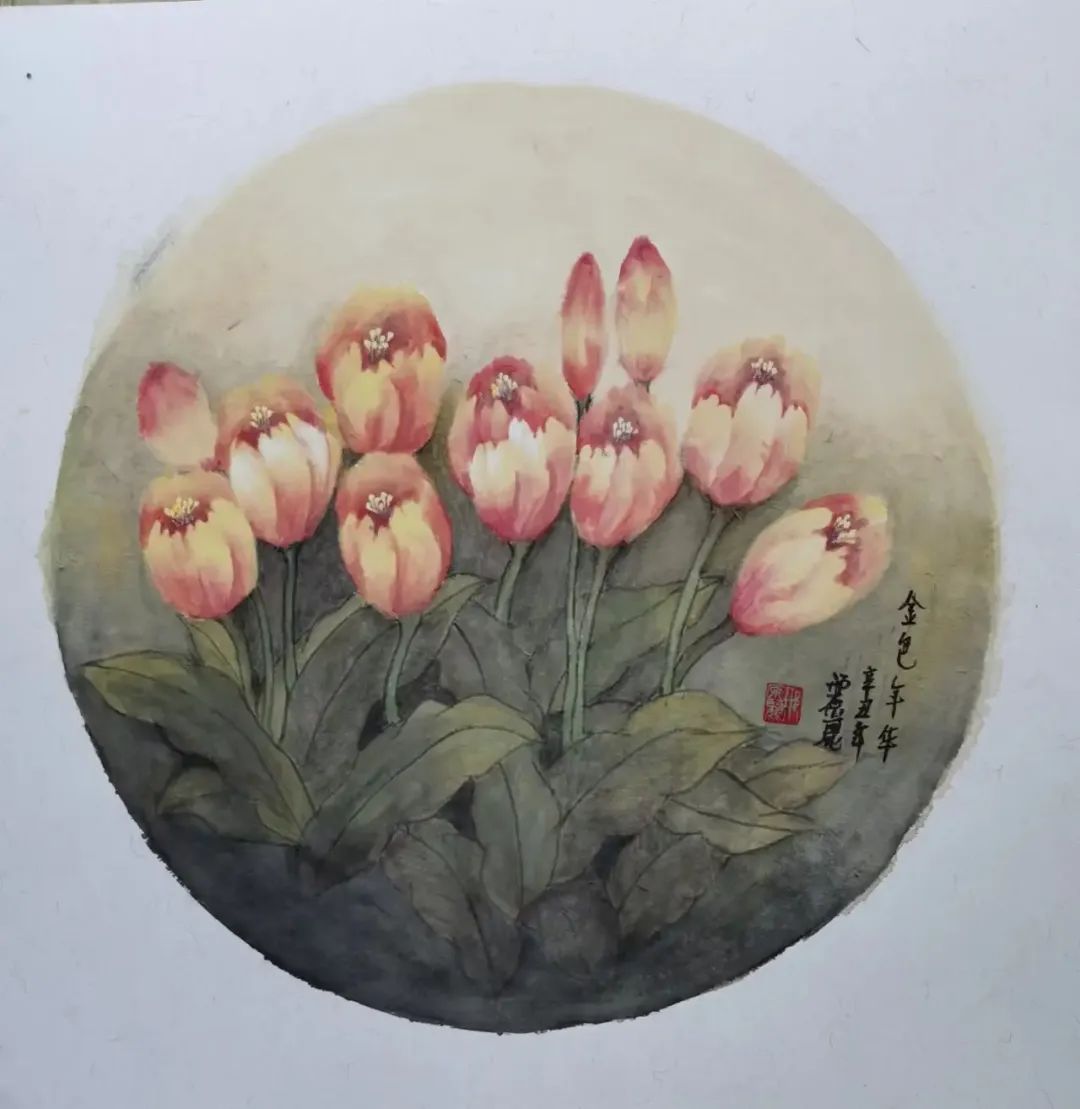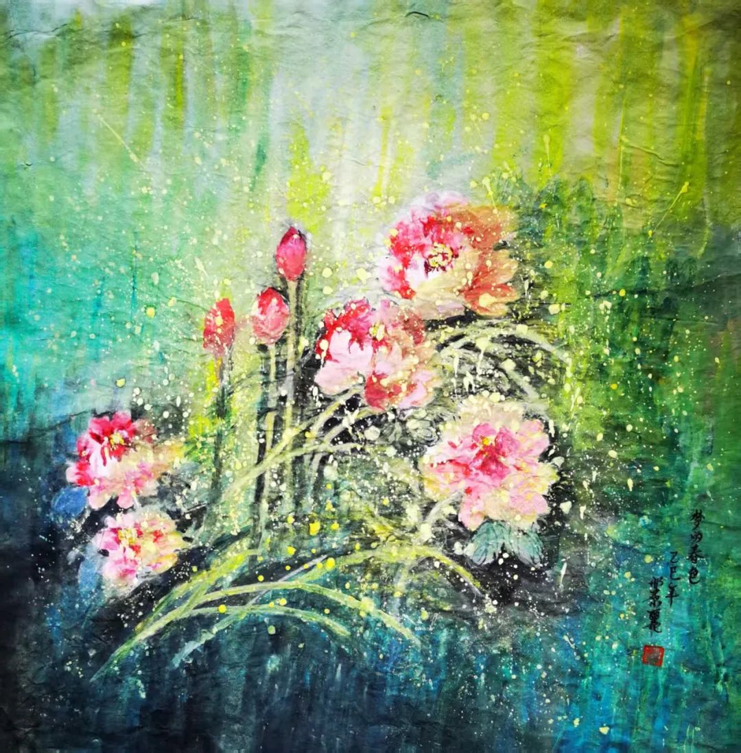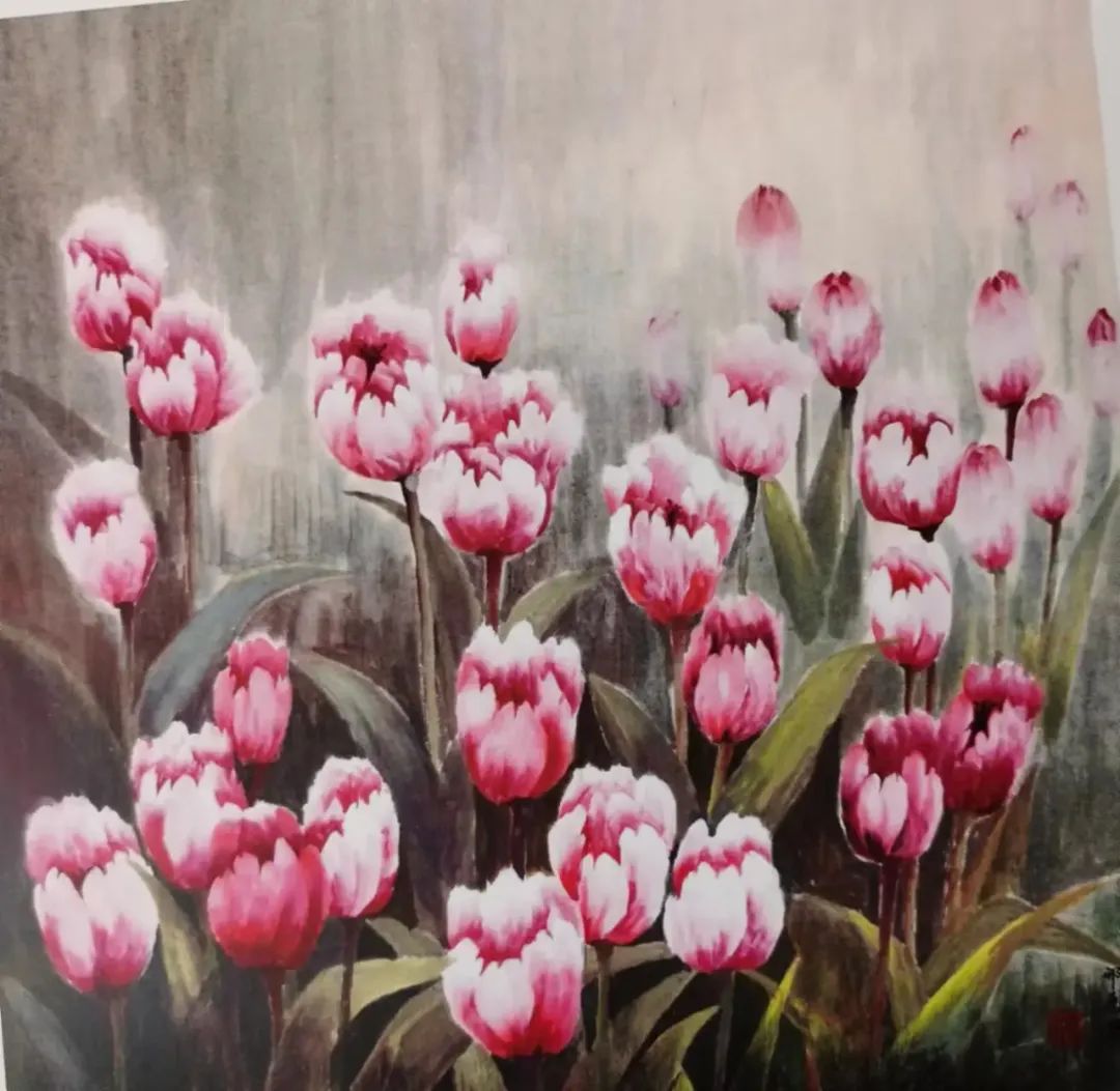“天人合一”是中国画的思想理念,也是民族文化精神的展示。以花的缤纷色彩和顽强生命力来展现人与自然和谐共生的关系,是我的创作理念。我希望能够以民族文化为滋养,展示真、善、美,创作出符合时代审美需求的好作品。虽然能力有所不及,但这是我内心永厘的向往、始终的追求。