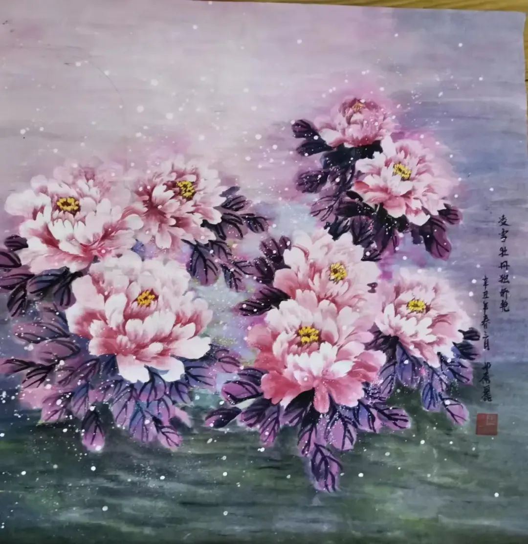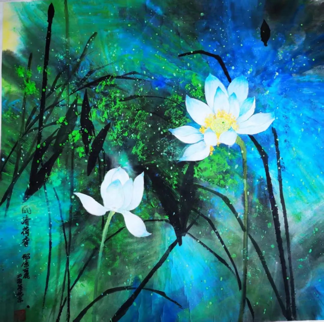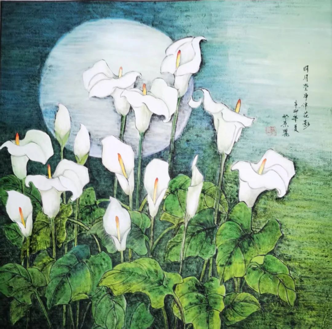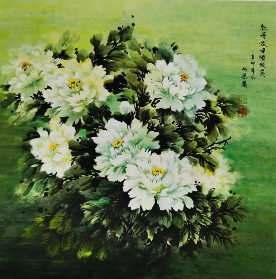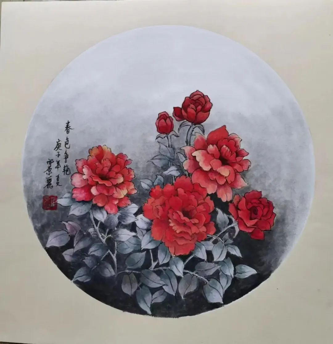 “天人合一”是中国画的思想理念,也是民族文化精神的展示。以花的缤纷色彩和顽强生命力来展现人与自然和谐共生的关系,是我的创作理念。我希望能够以民族文化为滋养,展示真、善、美,创作出符合时代审美需求的好作品。虽然能力有所不及,但这是我内心永厘的向往、始终的追求。