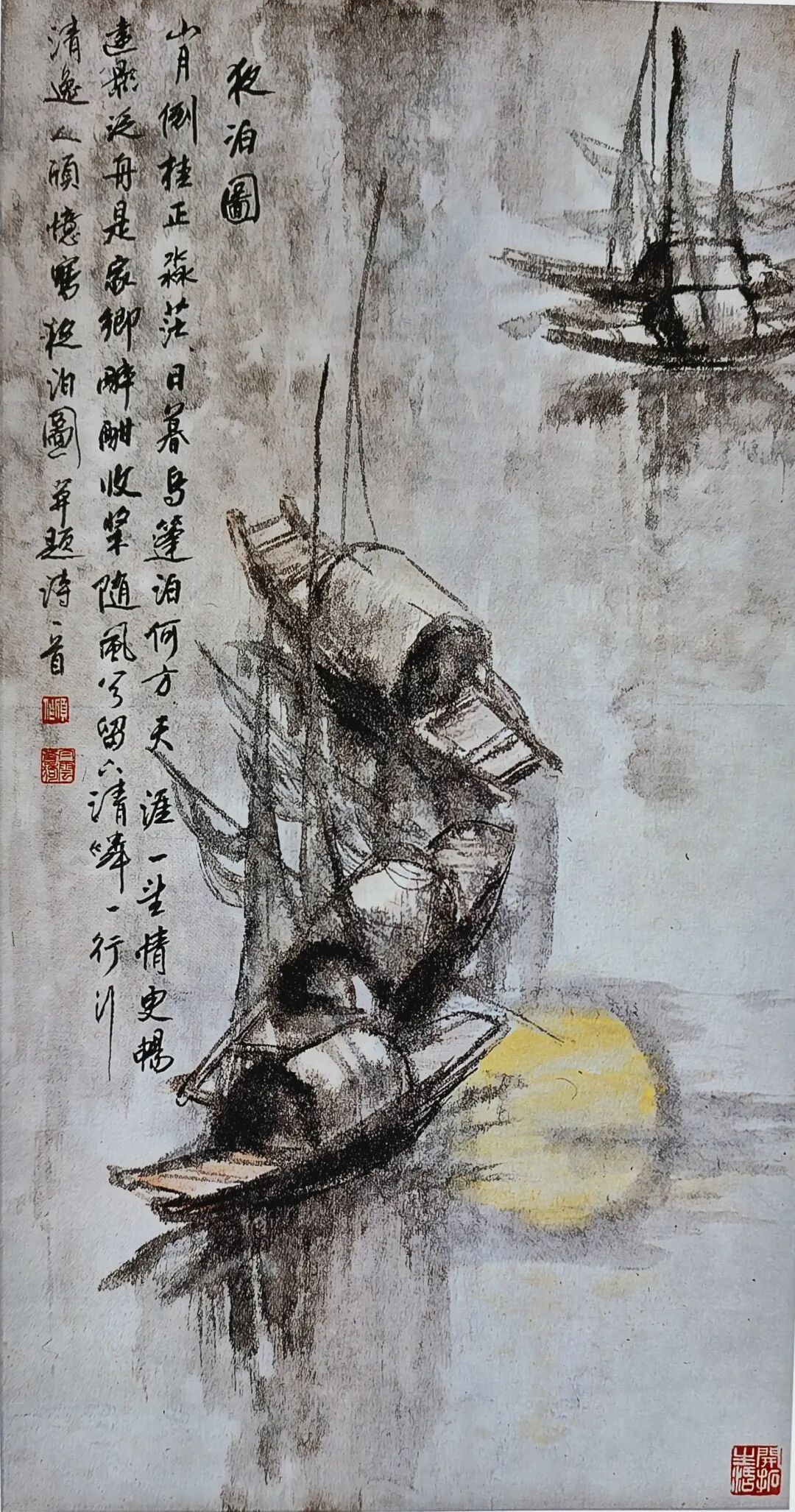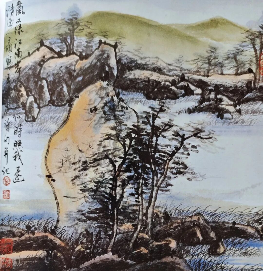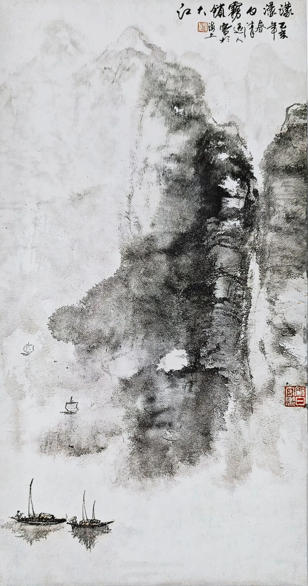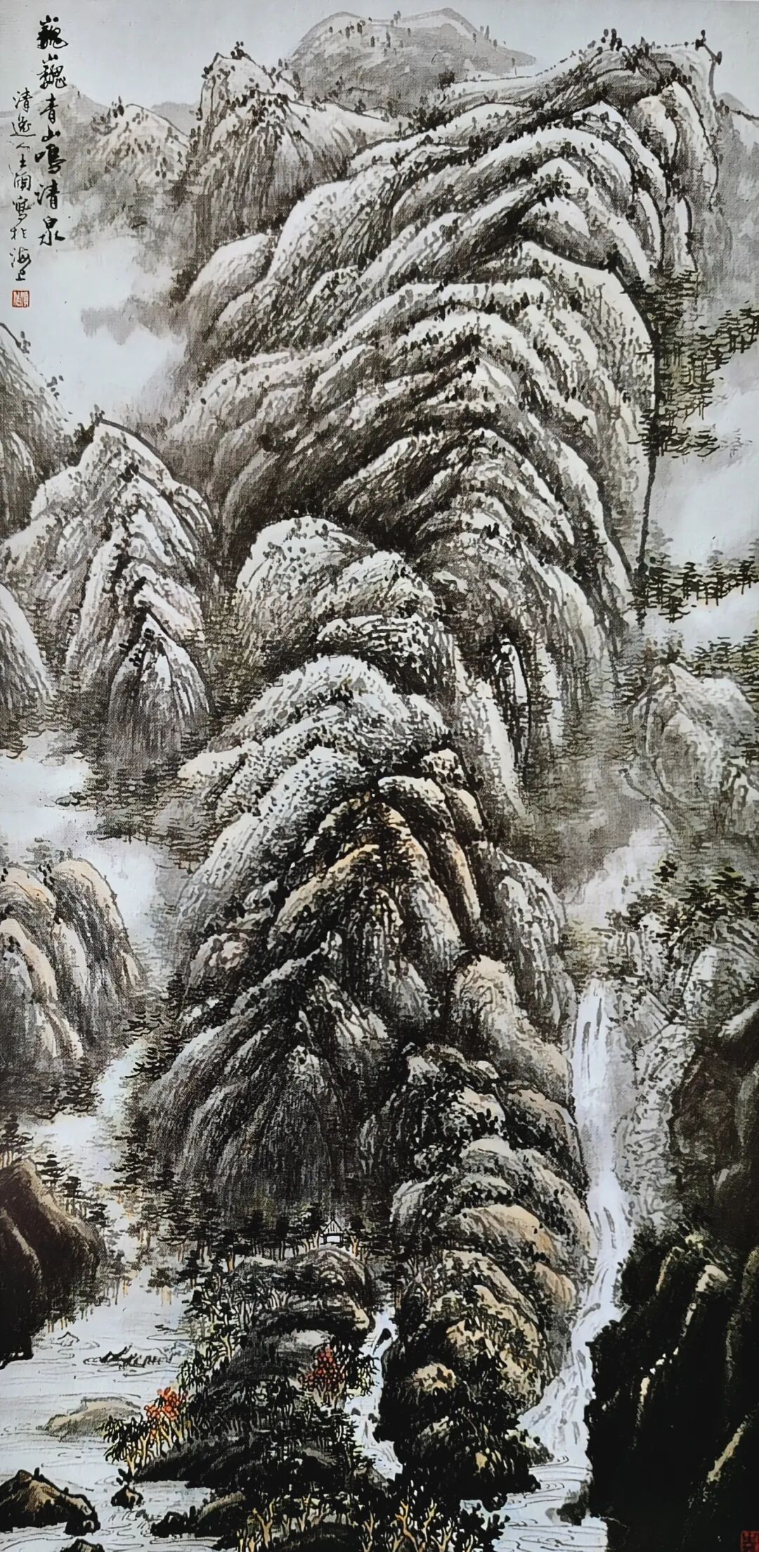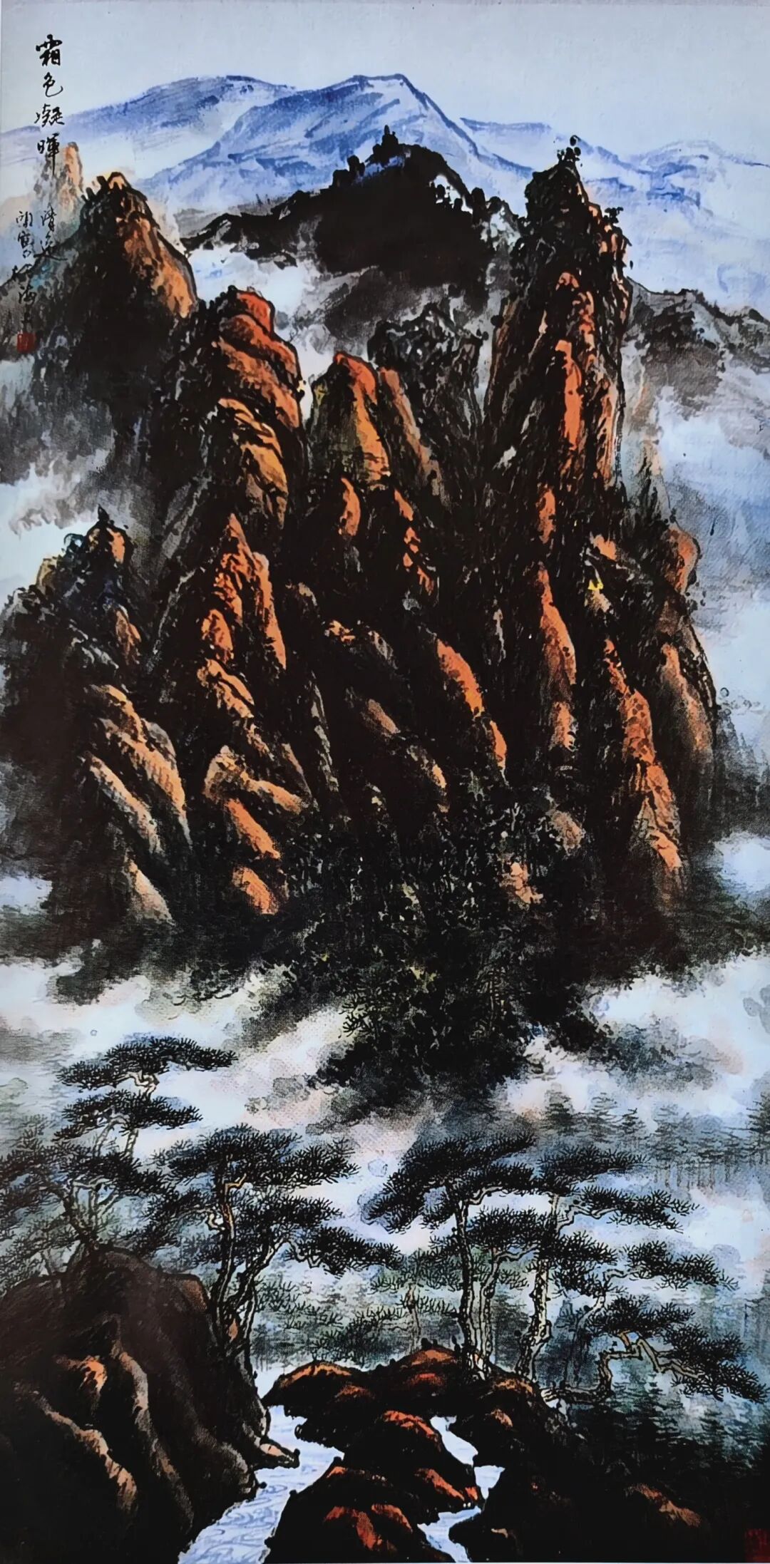 在色彩运用上,他展现了极高的艺术造诣。他通过对水墨的透与干湿变化的掌控,赋予了山水画作品丰富的层次感和生动的气氛。他常常运用湿笔渲染,营造出水光滟的效果;而在表现远山时,则多用干笔勾勒,使得画面既有远近的对比,又有空间的深度。他对色彩的灵活运用,使得每一幅作品都充满了生命力与动态感。