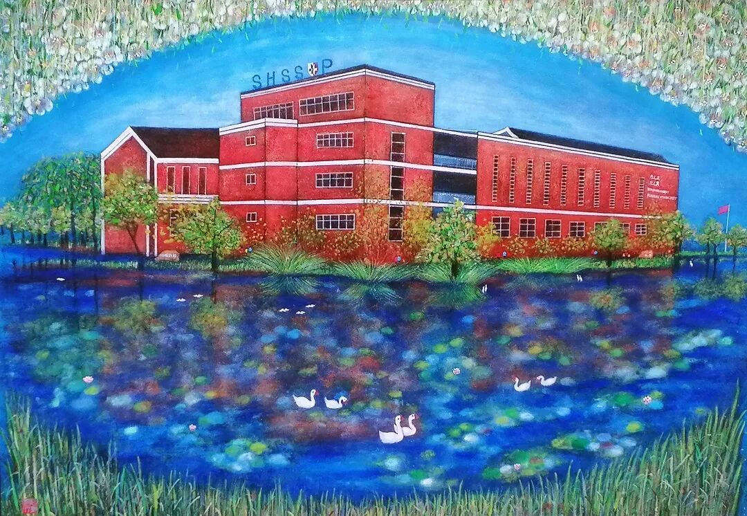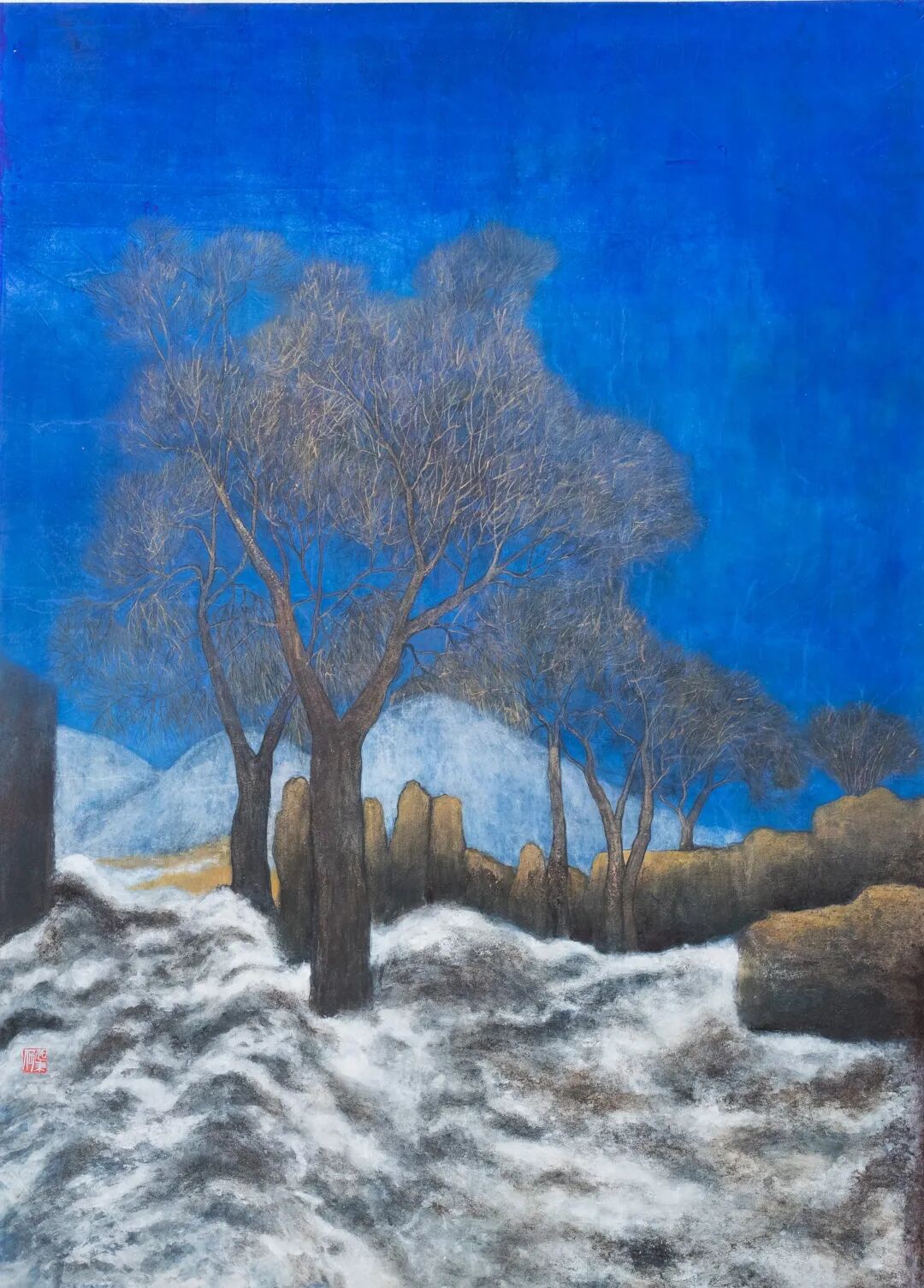 《回眸·湿地校园》130X80cm 重彩岩彩 2025年