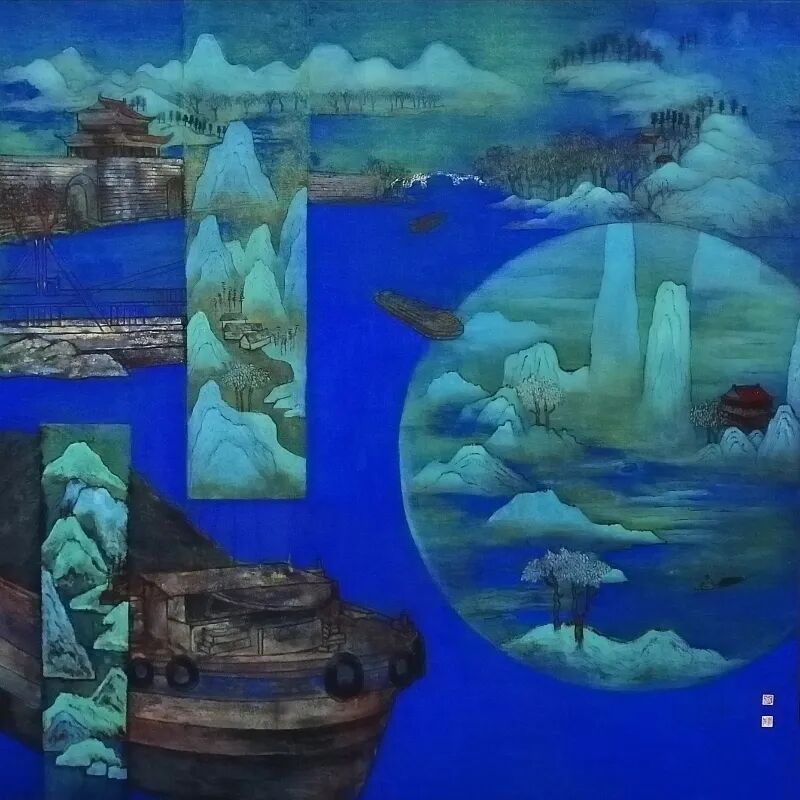 《运河文化·川流不息》90X90cm 重彩矿物色 2022年
