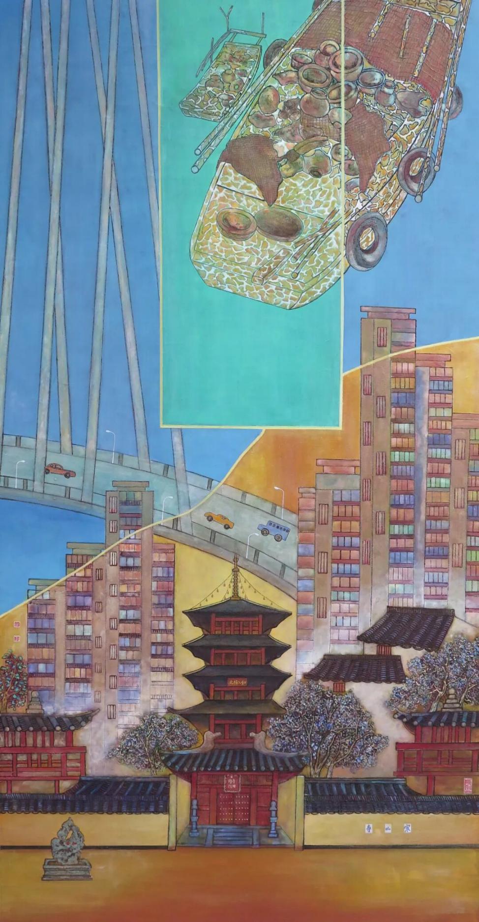 《运河文化·钟声依旧》240X120cm 重彩矿物色 2023年