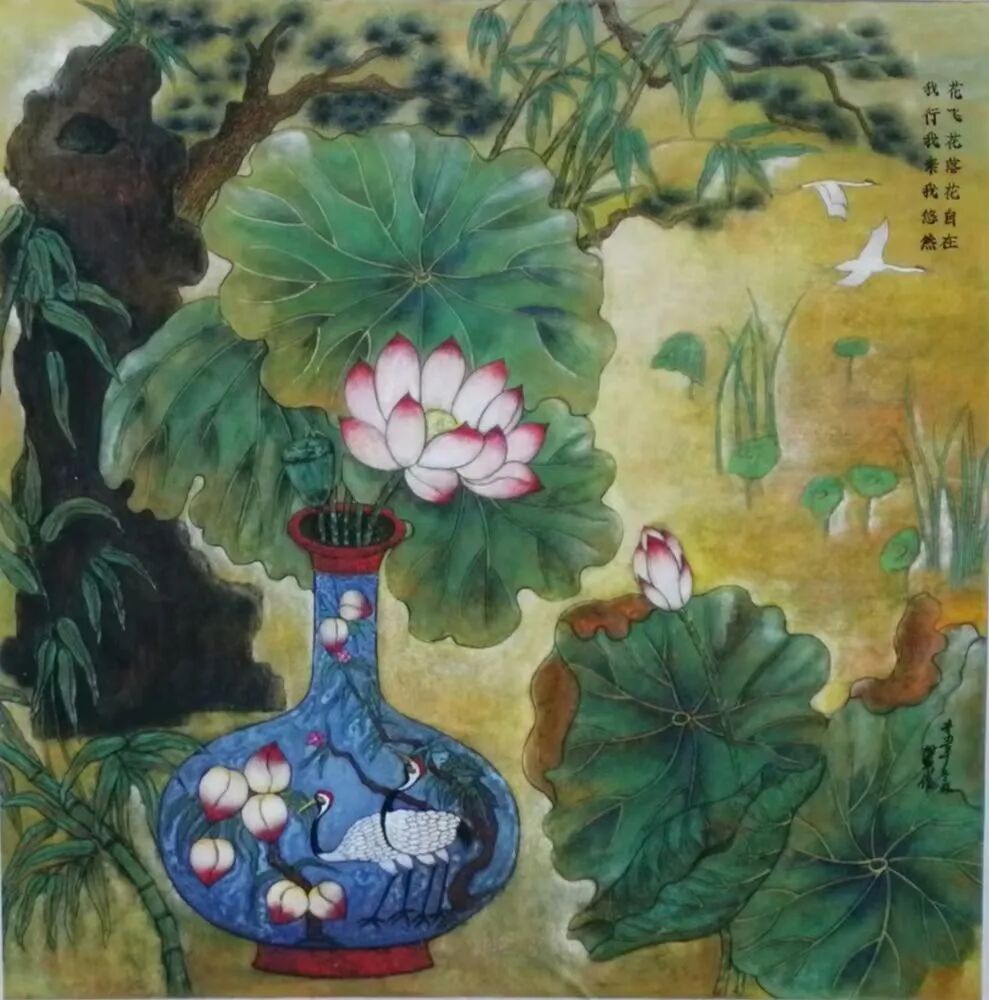 《生态文明·花开富贵》90X90cm 重彩矿物色 2021年