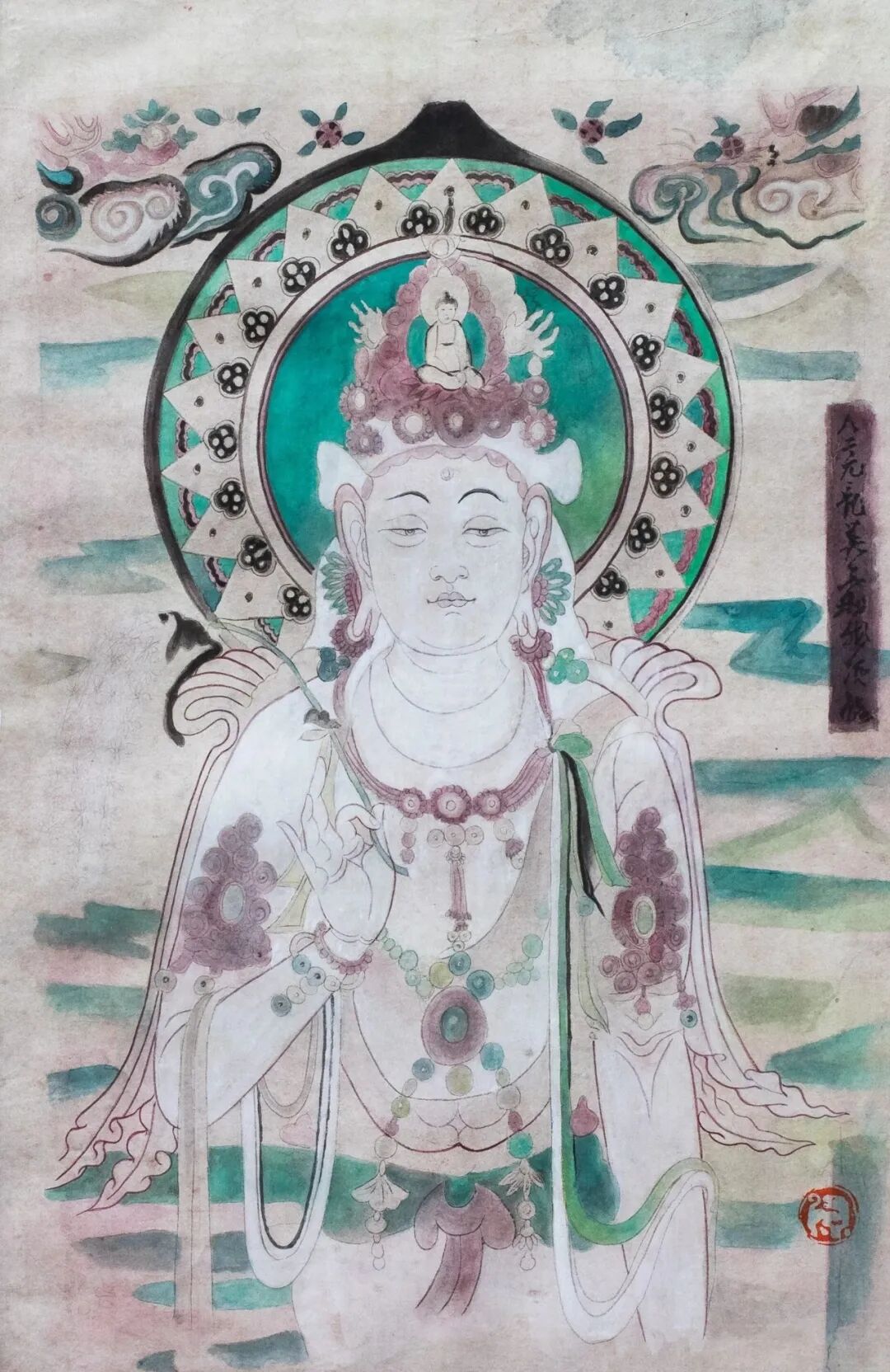 《敦煌壁画·观音》60X40cm 重彩矿物色 2009年