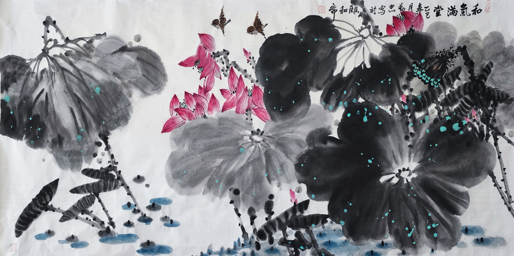 【和气满堂】国画写意花鸟作品,规格138cmx68cm四尺整张