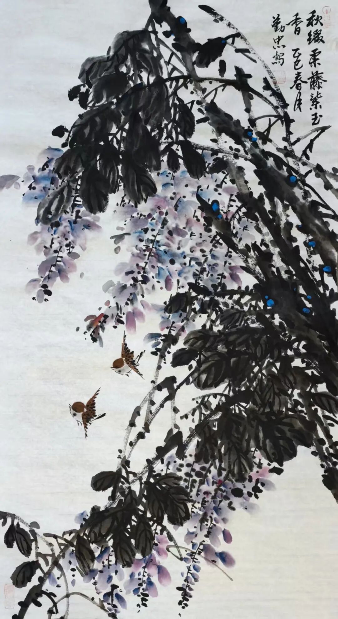 【秋缀柔藤紫玉香】国画写意花鸟作品,规格68cmx138cm四尺整张