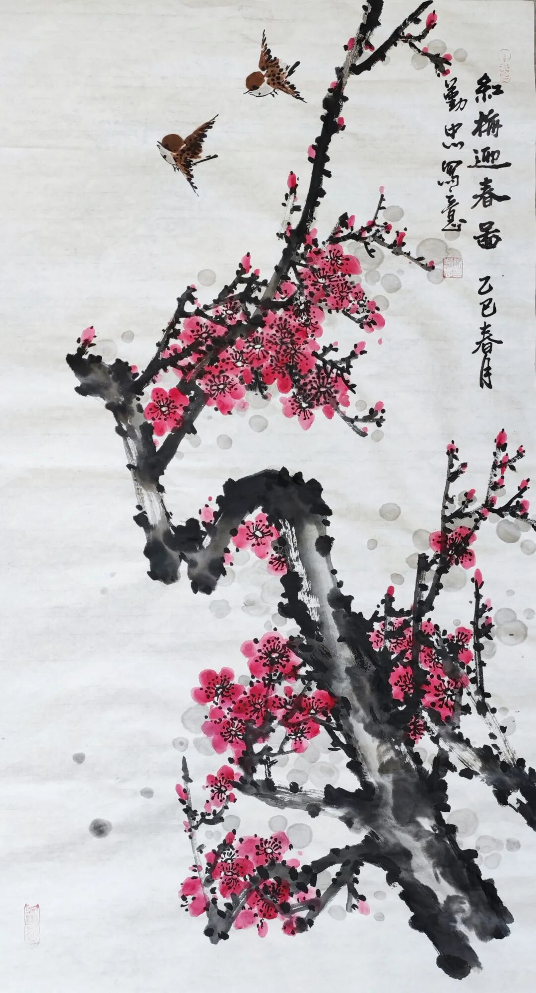 【红梅迎春图】国画写意花鸟作品,规格50cmx100cm三尺整张
