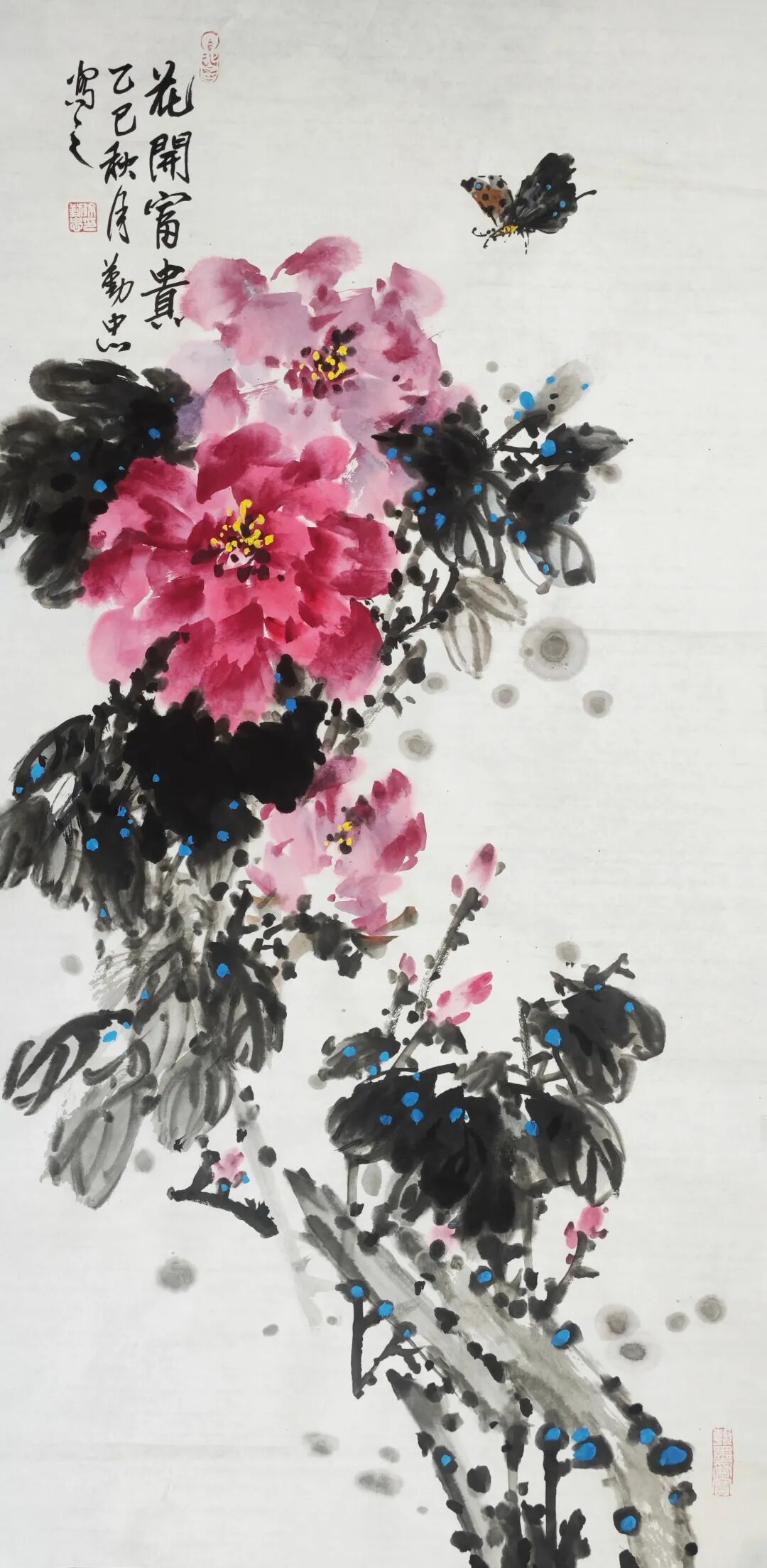 【花开富贵】国画写意花鸟作品,规格50cmx100cm三尺整张