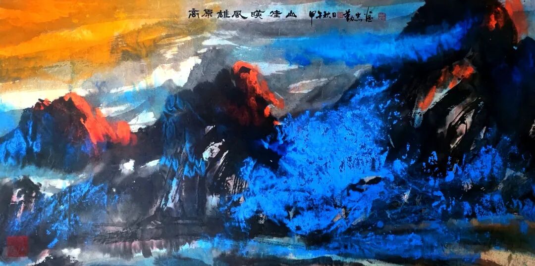【高原雄风映佳山】国画泼彩作品,规格138cmx68cm四尺整张(八平尺)