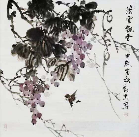 【紫云飘香】国画写意花鸟作品,规格69cmx68cm四尺斗方