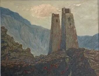 《羌寨红云》2018 布面油画 50cm x40cm
