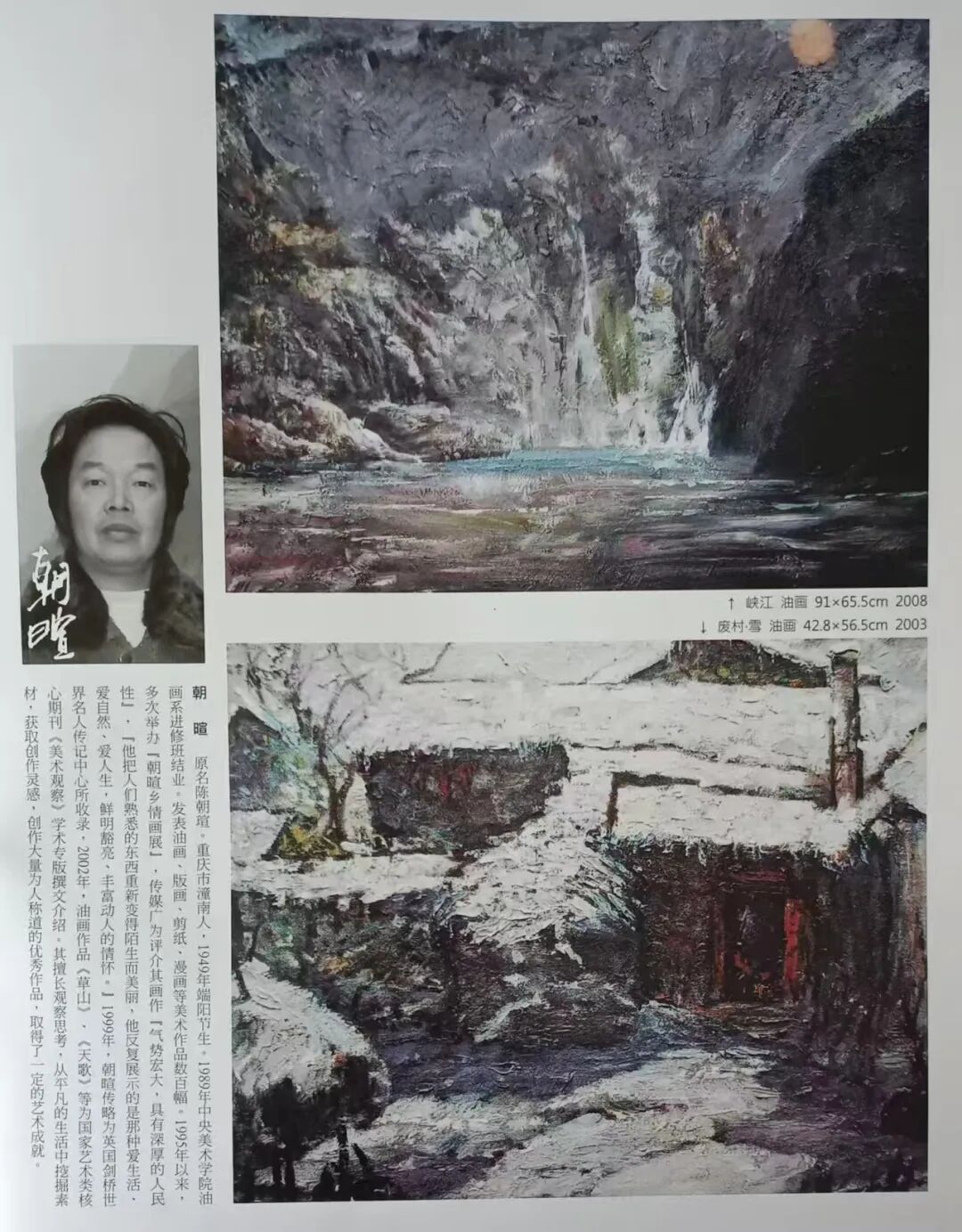 陈朝瑄,笔名朝暄,号凌云子。重庆市潼南人,1949年端阳节正午出生(6⽉5日)。从小随处涂鸦,终身爱好绘画,一生创作丰硕,多次举办“朝暄乡情画展”,引起轰动,收到各阶层人士和多个媒体广泛好评。为各地慈善机构和抗震救灾活动捐赠大量作品,被中外友人广泛收藏。在家乡建有“朝暄画苑”。1989年于中央美术学院油画系进修结业。现为云南省曲靖市麒麟区文化馆美术创作员。曲靖市美术家协会常务理事,油画学会主席,麒麟区美术家协会主席。自1981年从事美术创作以来,在国内外报刊发表油画、版画、漫画。