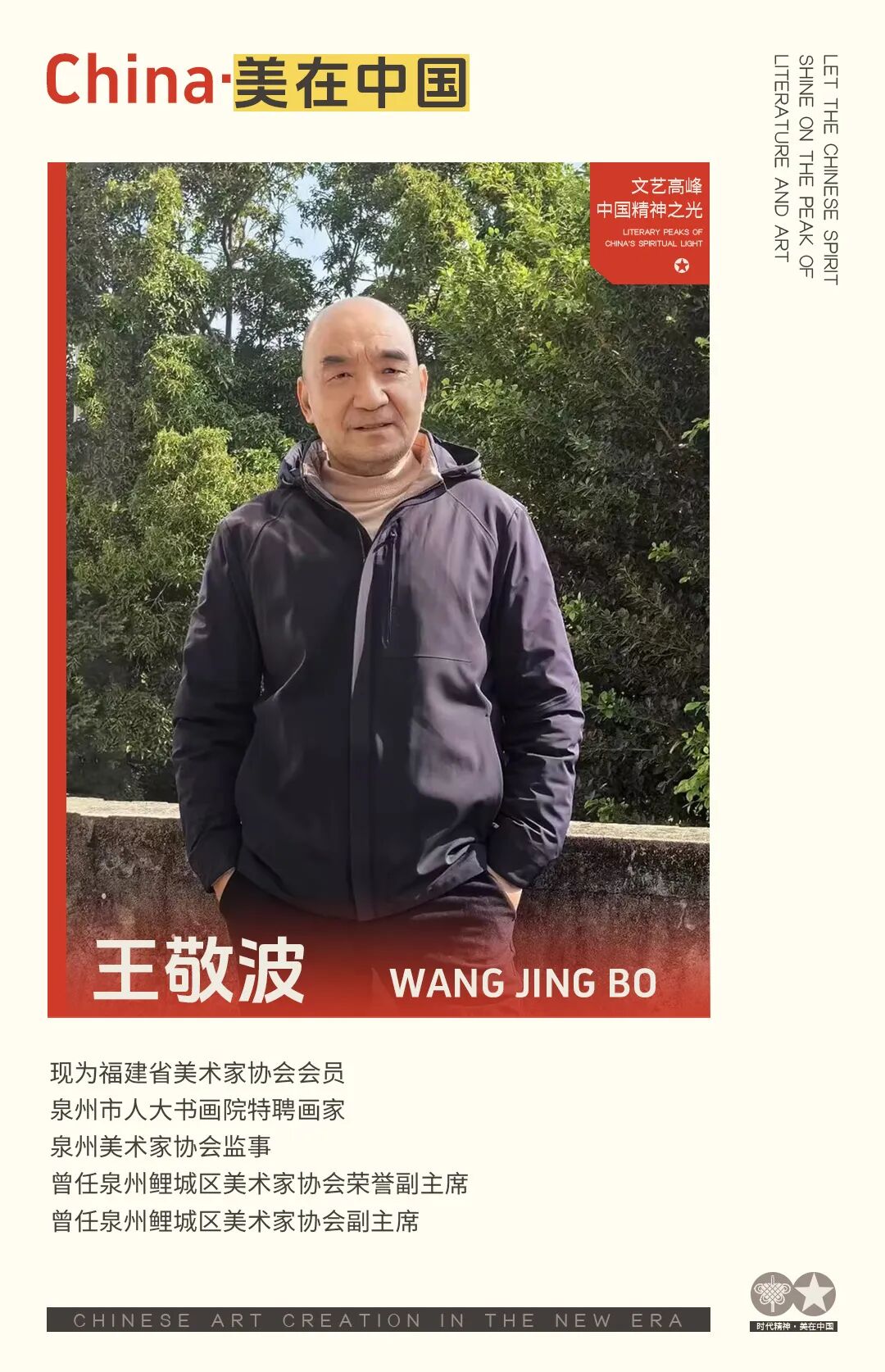 王敬波,现为福建省美术家协会会员,泉州市人大书画院特聘画家,泉州美术家协会监事,曾任泉州鲤城区美术家协会荣誉副主席、泉州鲤城区美术家协会副主席。