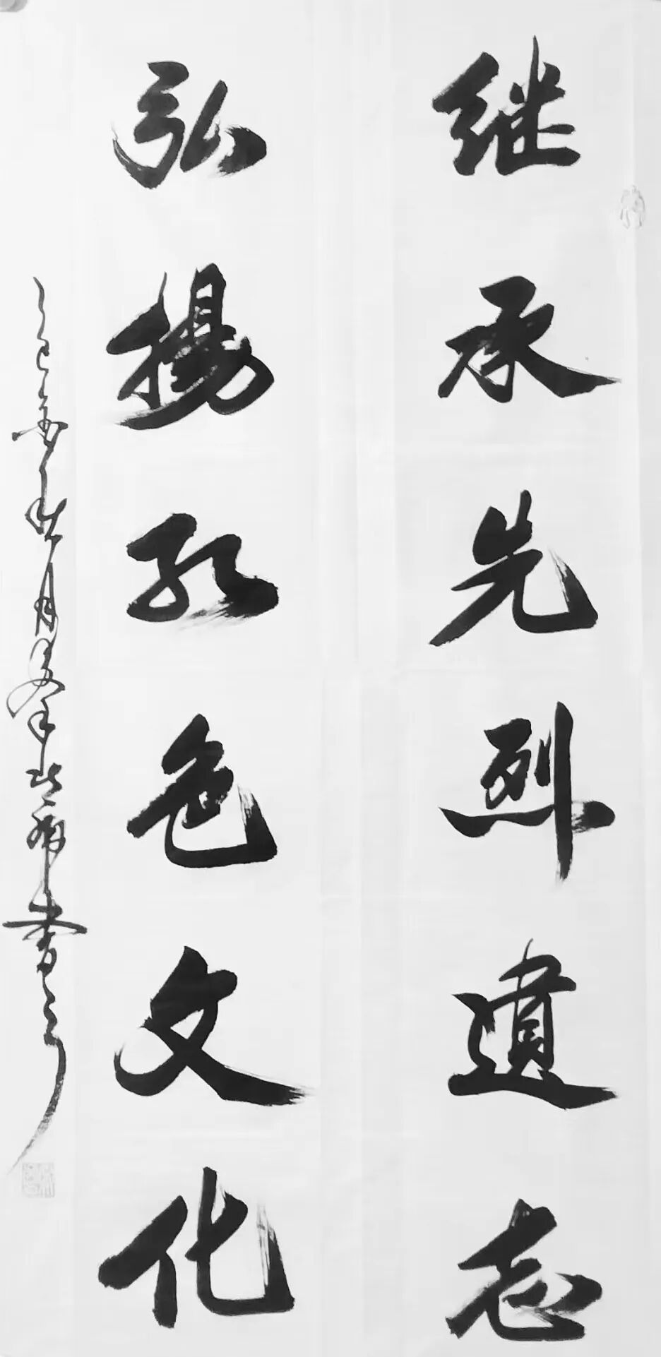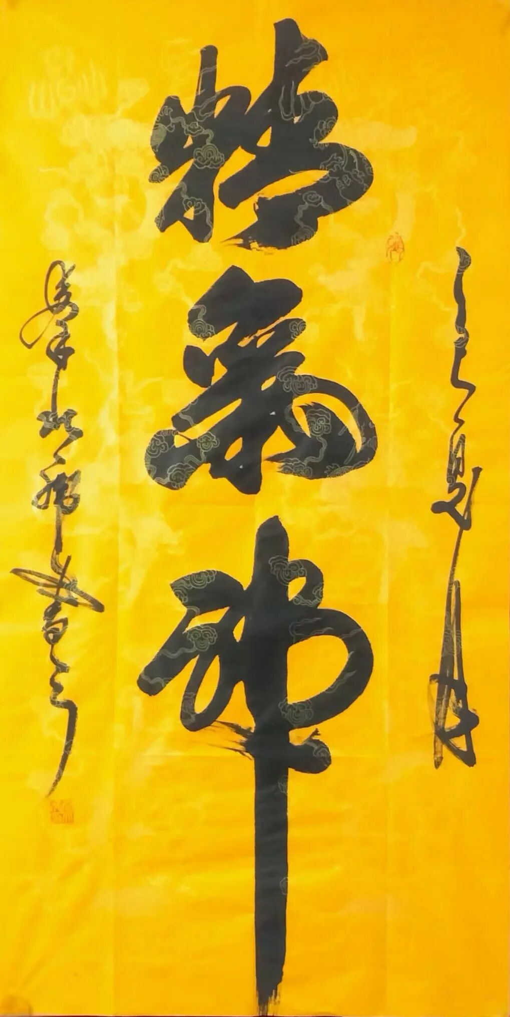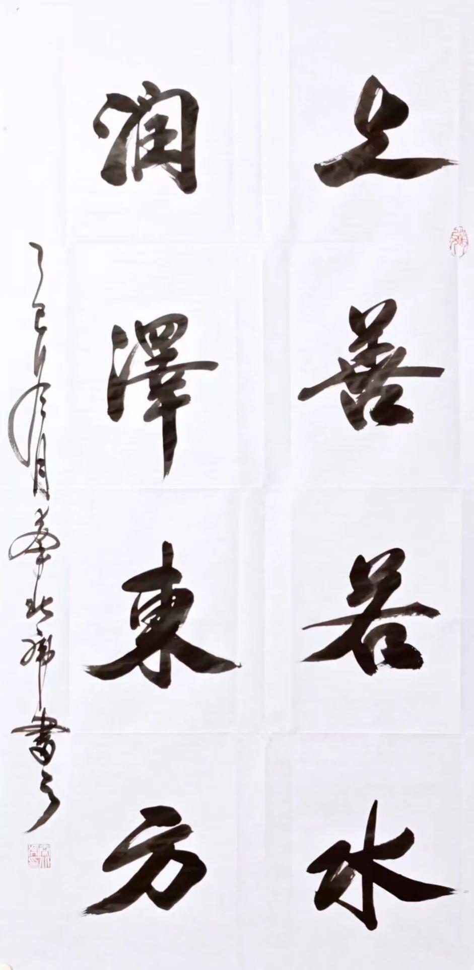 秦北虎老师的正反书写能利身益智,具有独特的养生之道。其榜书功力深厚,韵味十足;行书舒展自然,千姿百态;草书行云流水,贯连古今;风云大草更是世纪之美!如风云雷电,如遊龙万里,气吞山河,笔韵如歌!