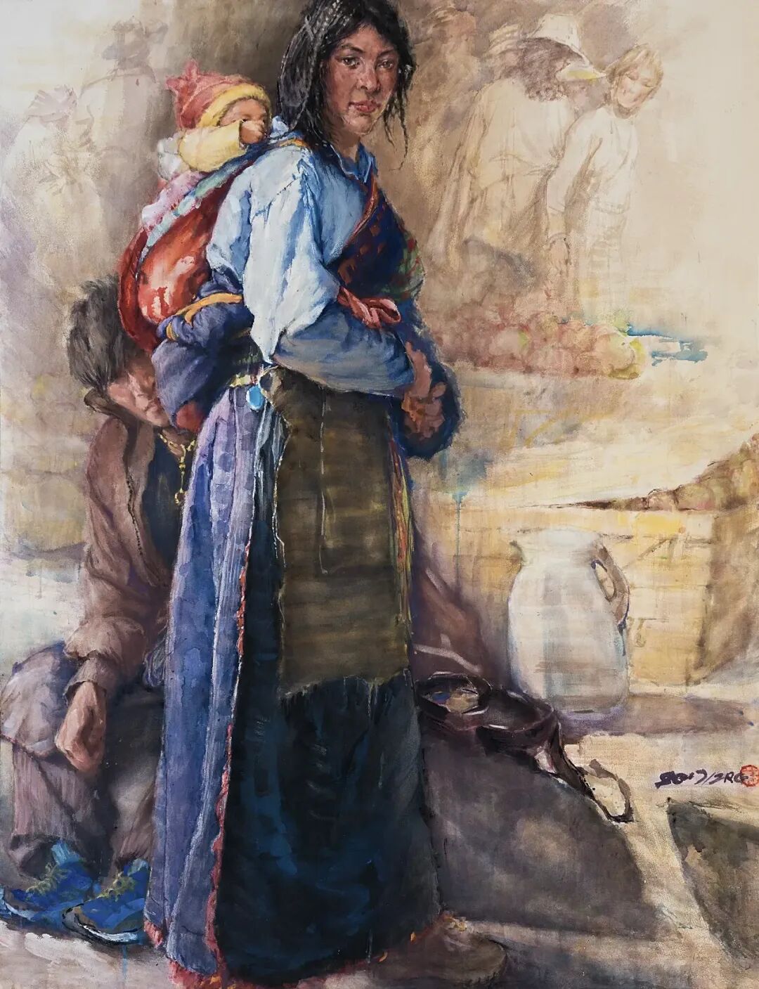 更有让我和一众滇地画家们研寻的云南多民族共创累积的人文资源宝藏:傣家姐妹们的娇美窈窕;白族男女在苍山洱海间的优渥环境中布满欢乐和笑靥!藏胞们在深山赶马逐牛运货送物的艰辛营生中,仍能豪迈地欢声笑语;还有高深莫测的摩梭族群中的女性们,她们在特有的母系氏族社会,长期形成的独特地位中,展现了既能干又强势的风采与身姿!