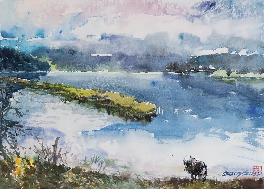 苍茫夕阳 | 纸本水彩 | 38×54cm | 2019 年