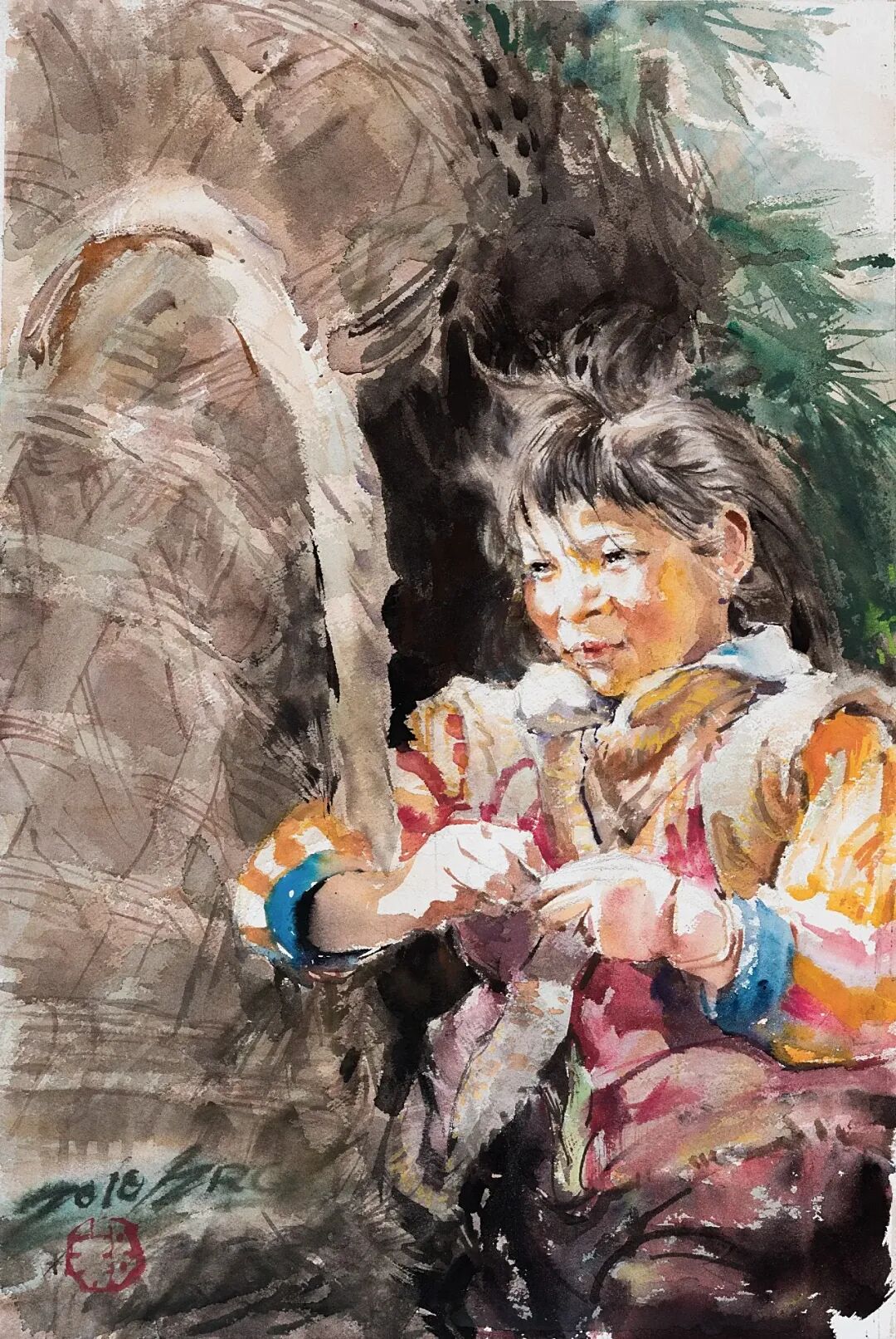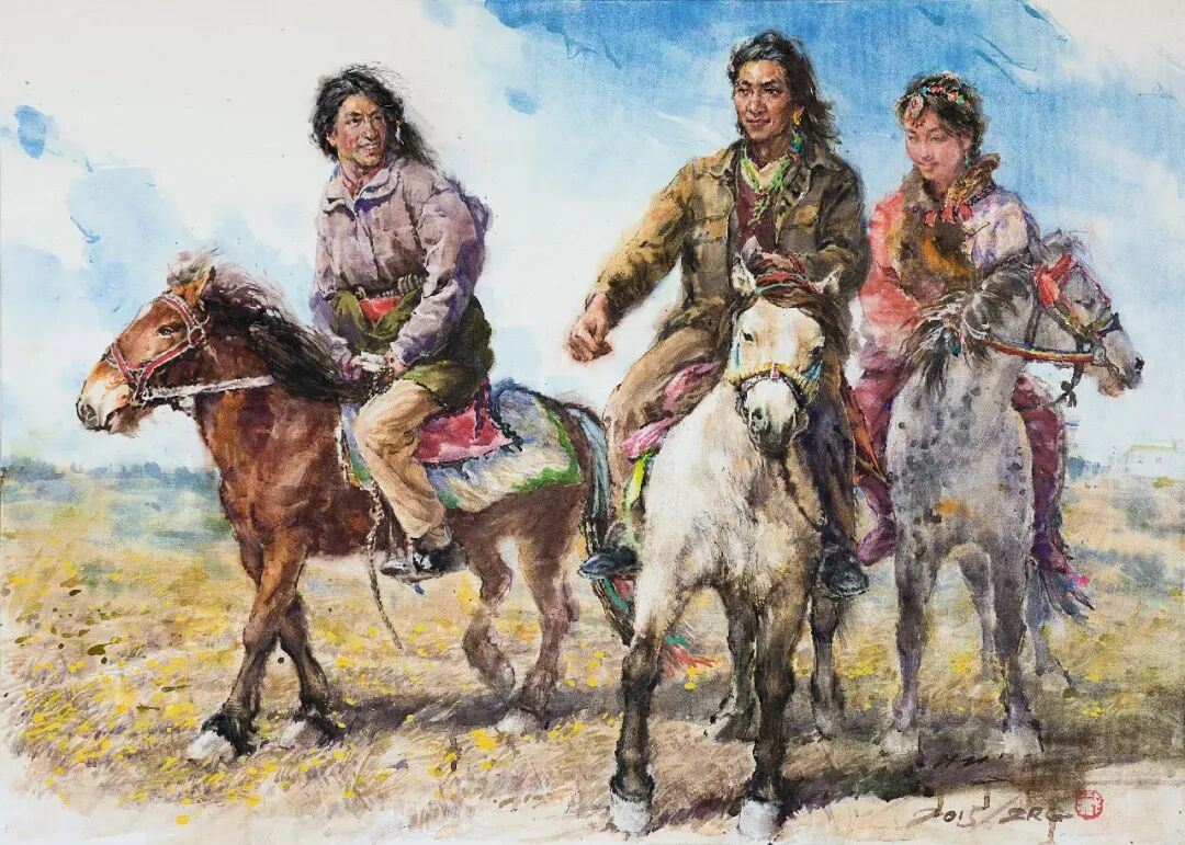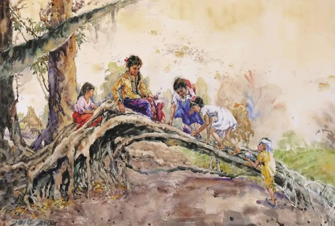 藏乡趣事 纸本水彩 78X108 2007年