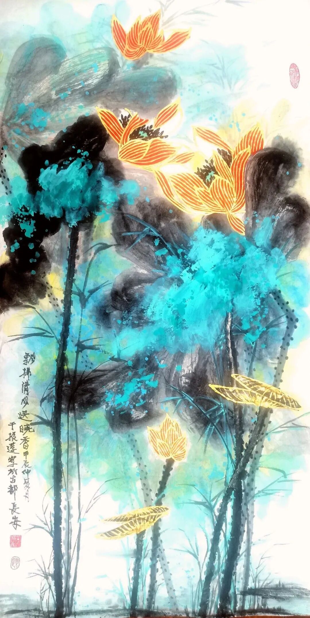初春的暖阳下,我在好友严晓娟的相邀之下走进于振莲的凝绝画境。眼前的于振莲,一如她画中的白荷,散发着高贵、典雅、大气的远香。环视画室我被她画室那几幅充满精神性的荷花和大气苍茫的山水画深深的折服。有幸观于振莲笔下之荷,胸中山水,心中留余香,眼眸入画境,真乃人生乐事也。那一幅幅涌动着生命气象的艺术品,毫无一丝媚俗之气,那种开阔的境界,笔墨挥洒之性情,哪像一个气质如兰蕙般的女子所绘,让人读到的是她的大气、豪放、鲜活、率真、澄明的艺术风骨。犹如阅读李白之诗,清照之词,品味一种浪漫与古朴,自然与创造的和谐,在画卷的诗情画意中弥漫着女性的婉约和清丽,张扬出心灵纯美的追求。