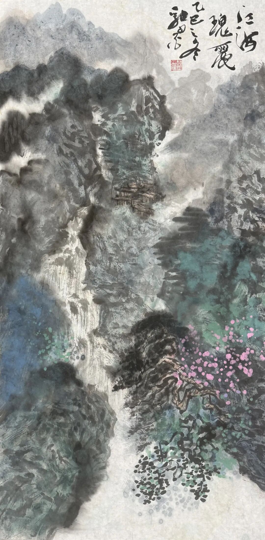山河,是中国人的精神原乡。山河承载着中华民族对天地自然的敬畏、对家国故土的眷恋,更蕴含着 “天人合一” 的宇宙观与 “家国同构” 的文化基因。在当代语境下,艺术家们以多元媒介重构山河意象:或在水墨氤氲中延续文人画的写意传统,以笔墨流转呼应山水精神的当代传承;或在装置、影像等跨界实践中,赋予山河以生态、社会与个体生命的多重维度。当春的生机与山河的厚重相遇,艺术便成为 “颂” 的载体 —— 它不仅是对自然时序的礼赞,更是对民族精神生生不息的咏叹。