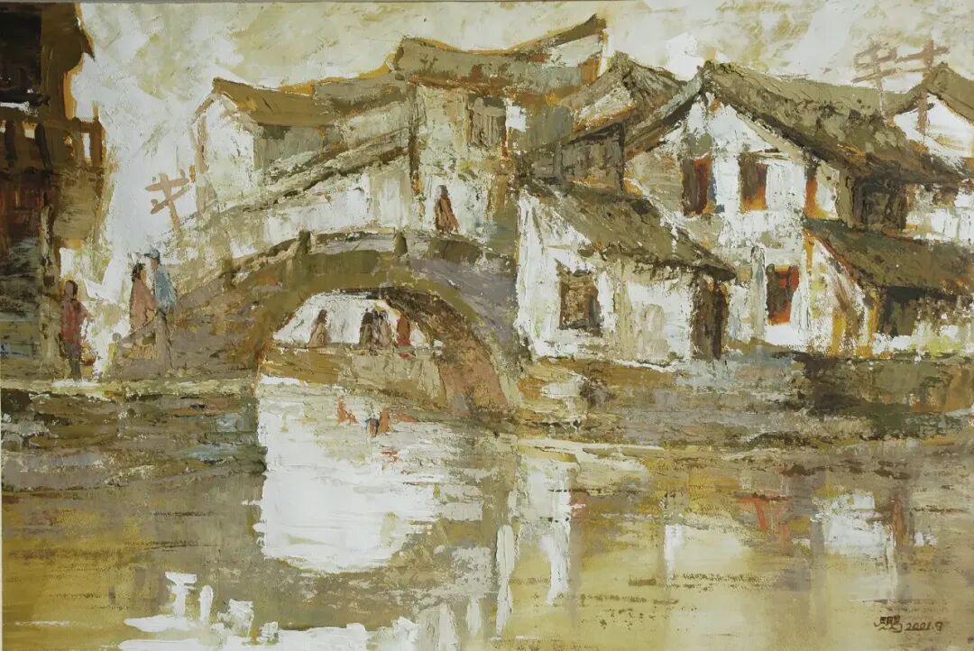 油画的表现性和厚重感是我非常喜欢的,但是用油画写生实在不便,多少有点懒惰吧……我开始尝试丙烯绘画。深圳画院画家王立星老师对艺术表现的理解使我感悟至深,不要画看见的东西,要画看不见的东西。“形象”一词概括得太深奥,“形”是景物的状态表现;“象”是景物的内在品质。“形”可以直接画出来,“象”要靠感受、体会和觉悟,一幅绘画作品呈现的是作者的情感态度、艺术观念和审美趋向,其情感抒发和个性语言尤为重要,我一直刻意地表达,一直在努力地寻找!还是力不从心,意不如愿。