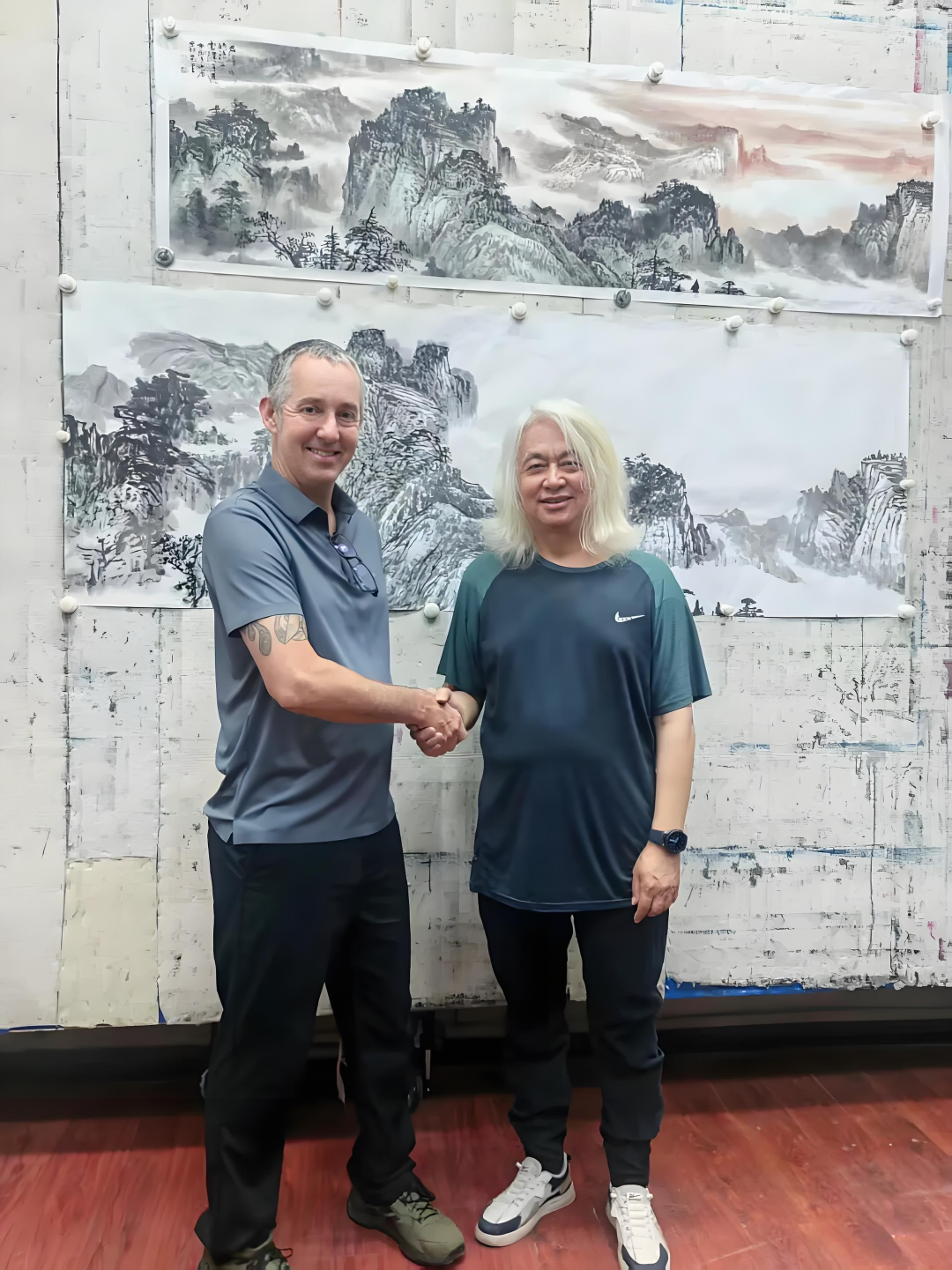重庆市美协荣誉理事杨涪林(右)和盛山书画院陈长科合影留念