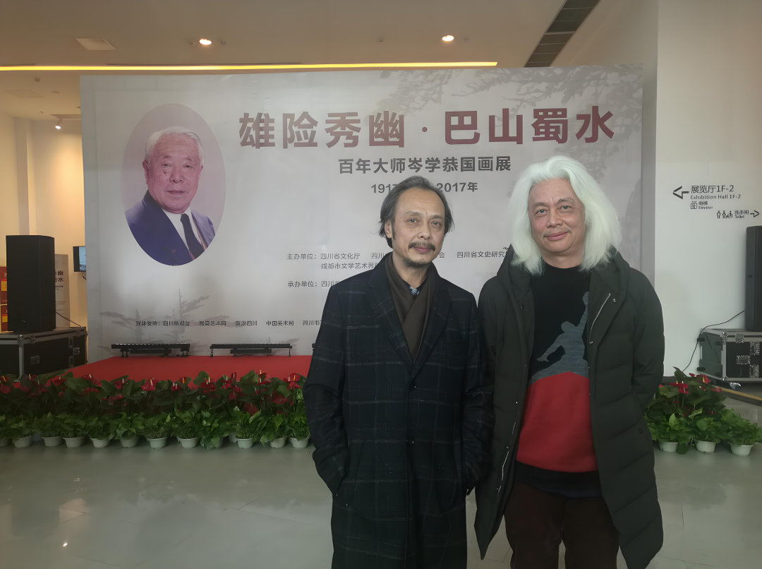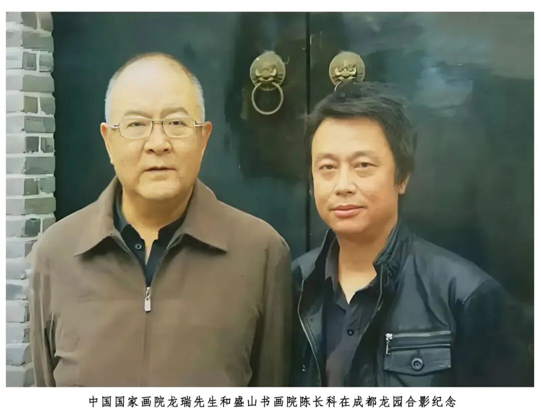 中国国家画院龙瑞先生和盛山书画院陈长科在成都龙园合影纪念