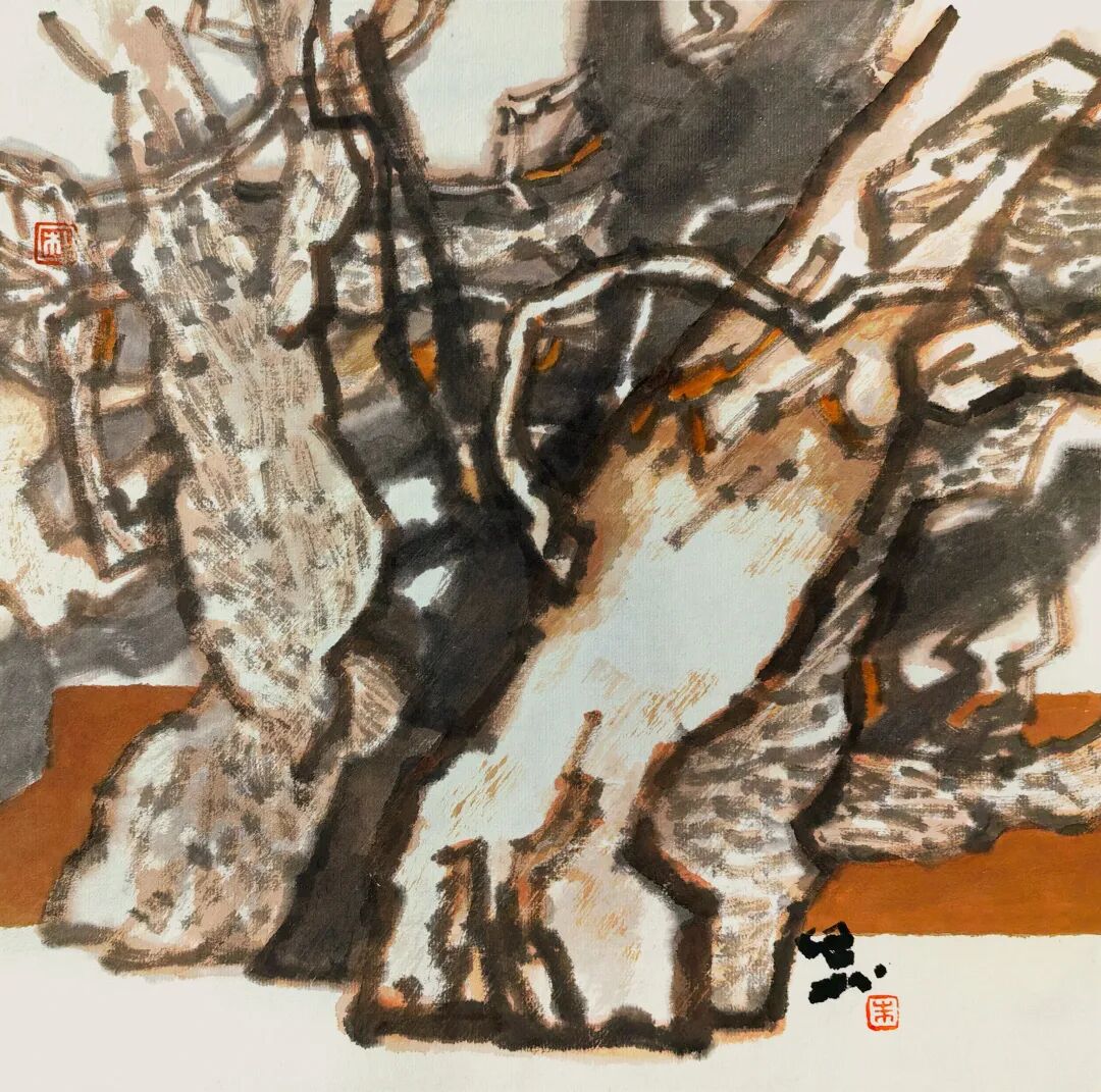 《古木系列》是我近年创作的主题。从热带雨林到大漠胡杨,从滇西滇朴到江南银杏,画面中一株株不同形态、质性的独特古木,就是一个个内蕴品格与涵养故事的灵魂。