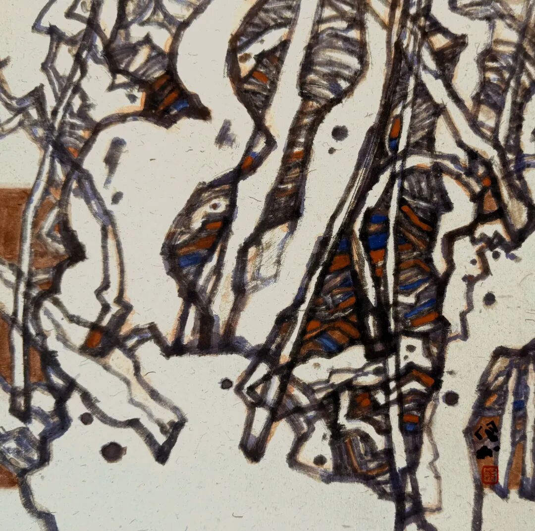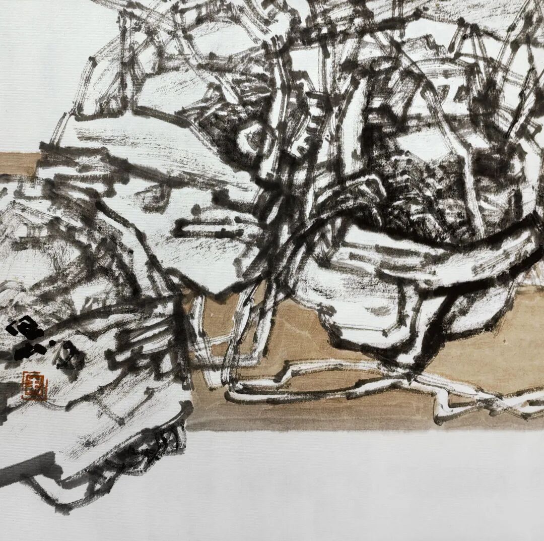 古木,象征的是生命坚韧生长、抵御磨砺的品格特质;舟楫,象征的是生命潜行修道、追寻自然的心灵境界。也就是说,古木,是"生命成长"的视觉形式符号;舟楫,是“生命修行”的视觉形式符号。也就是说,这就是近年来我创作《木·舟系列》的思考与理念。