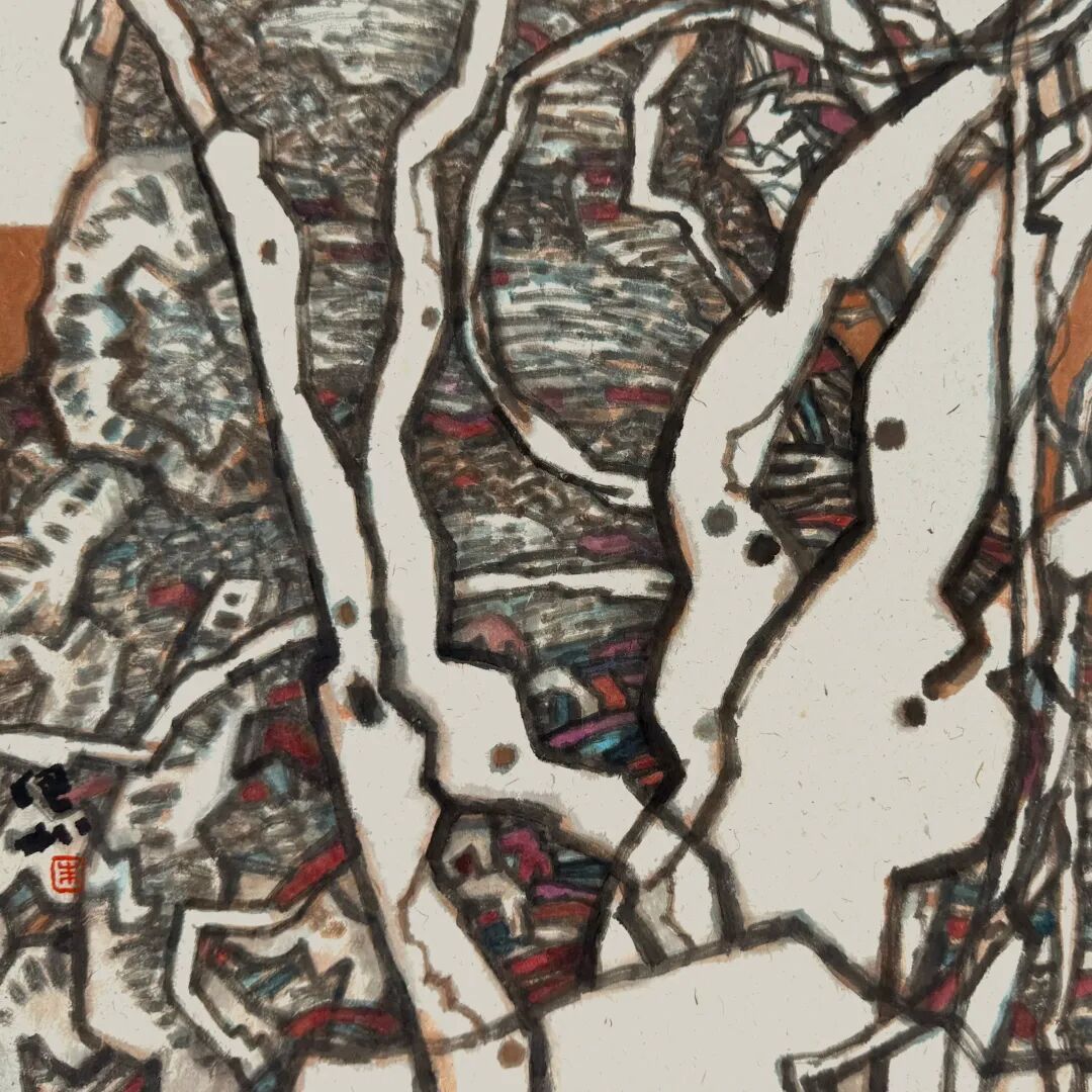有一种关于生命的哲学阐释:生命具有阴阳组合变化的特征。阴(灵性)是指精神形态,阳(肉体)是指物质形态;生命需经过悟道修行,才能获得高层次的形态。而古木也是有生命灵性的、也具有修行状态的,其灵性修行的形态,足以让我等人类敬重膜拜。面对古木的苍茫、奇倔、傲然的气质及形态,内心颤动灵感喷发,以线条、造型、肌理及色彩竭尽心力去体悟,去表达。诚然,古木的形态与灵性特质,是可以清晰地凸显出人(创作者)的性格特质。