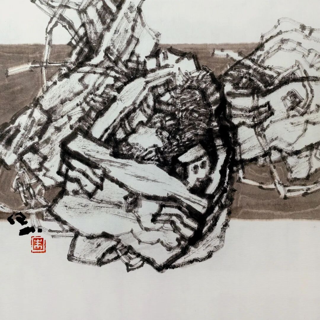 我,正在努力以我的愚拙之笔,真诚之笔,探索之笔,去记录、描写古木与舟楫,去阐述、演绎古木与舟楫蕴含的象征意义。其实,我以初心、真情创作的一幅幅古木舟楫水墨作品,似乎正是我的生命旅程中的映射与写照;每一帧不同形态、特质的独特图像,就是我曾经历与沉潜的生命的深度体验。