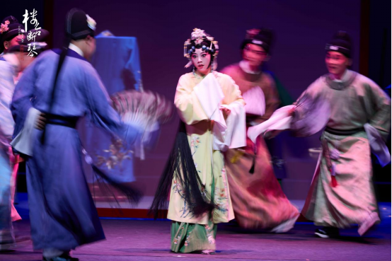 舞台上,荀派传人吴琼将敫桂英的痴情与决绝演绎得入木三分。她的水袖表演尤为精彩——通过单抛、双抛、抖袖、翻花、下腰等一系列精湛技巧,将人物悲愤与绝望的情感层层推进。饰演王魁的霍敏则突破了脸谱化的反派形象,塑造了一个在现实裹挟中逐渐迷失的“真实的人”。两人的对手戏张力十足,配合默契,精准呈现人物情感起伏的每一个瞬间。