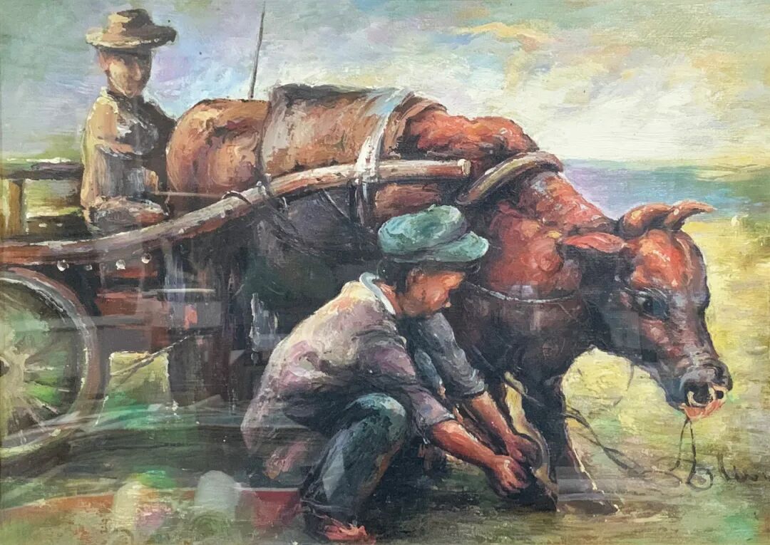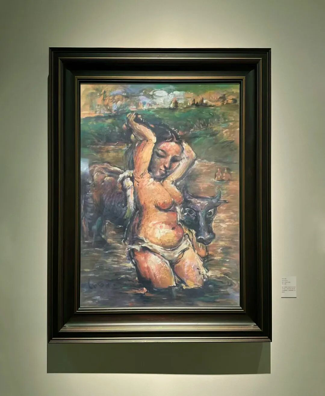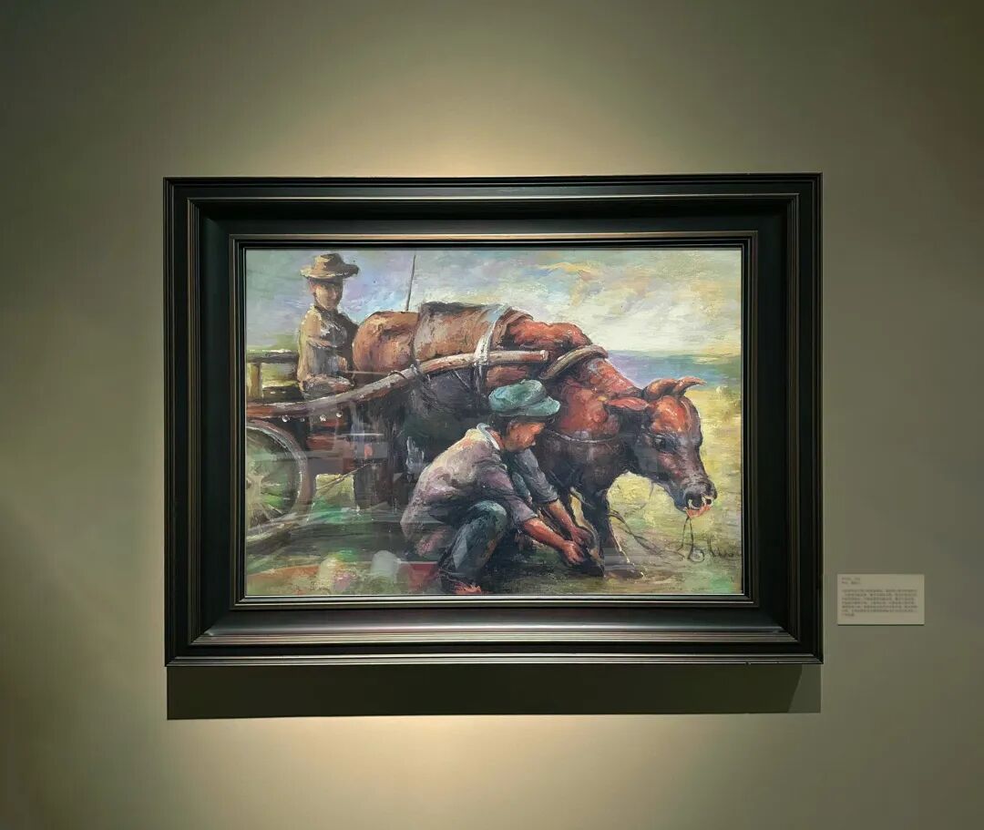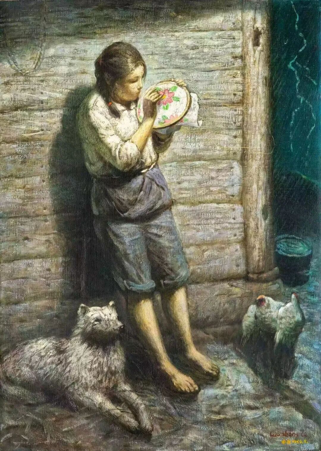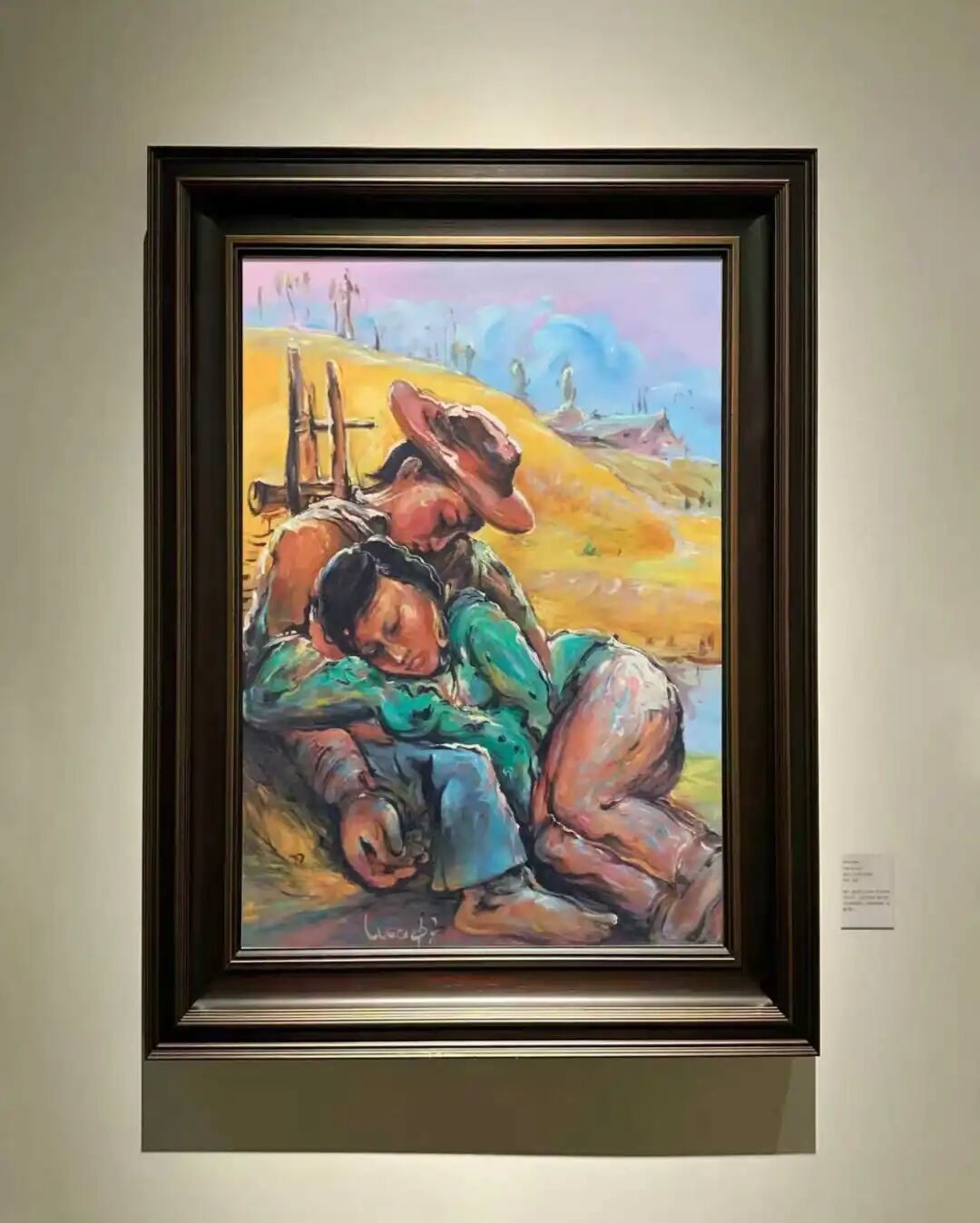 罗中立的油画作品始终聚焦于乡土题材,以农民和乡村生活为切入点,展现了中国社会底层民众的生存状态与精神世界。在相关作品中,我们能看到他对乡村日常场景的细腻捕捉,如农民与牲畜的互动、乡村人物的休憩瞬间等。这些场景并非简单的写实描绘,而是蕴含着艺术家对乡土文化的深深眷恋和对农民命运的深切关注。