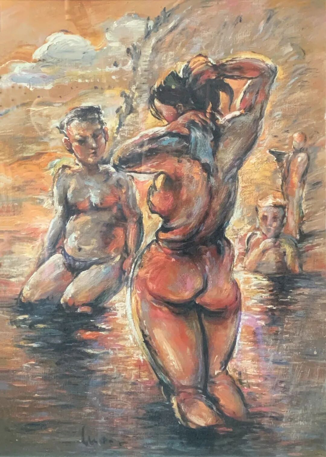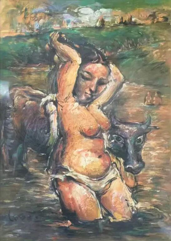他笔下的乡村女人形象,更是具有深刻的象征意义。这些女性或辛勤劳作,或疲惫休憩,或与自然亲密接触,展现出坚韧、质朴、纯真的品质。她们是乡土女性的代表,也是中国广大农民群体的缩影,体现了罗中立对人性本真的追求和对生命尊严的维护。通过这些作品,罗中立将乡土题材提升到了一个新的高度,使其具有了更为广泛的社会意义和文化价值。