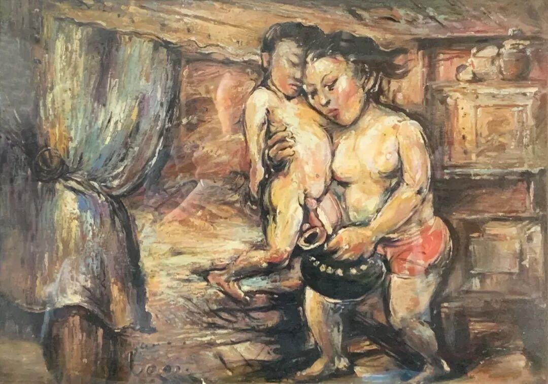 罗中立笔下的农民有着一份真生活:有沉重劳作的苦;有阖家围坐火塘的乐;有夫妻风雨同舟的爱;有母子舐犊殷深的情。这苦、乐、情、爱,却都有一种川味,一种麻辣辣的生活趣味。这骨头里的表情被罗中立化为一种日常性的生动叙事,一种夸张的视觉捕捉和强化,一种罗中立式的精神承受。当年凡高以他真切的悲悯,画出了矿工的苦难和命运,罗中立则以他的温和和俏皮,画活了大巴山的生趣,以他的真情承受着中国农民浓厚和泼辣的气息。